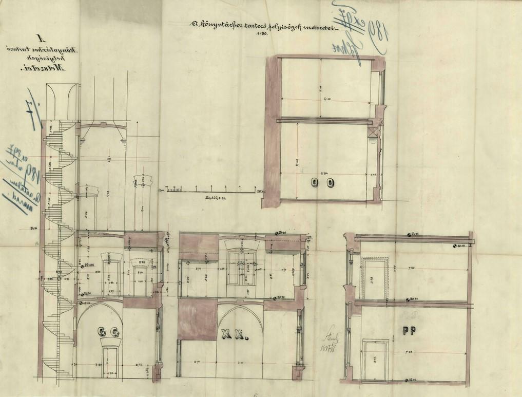 Steindl Imre első tervvázlatai a jövendőbeli könyvtár helyiségeiről (1897)