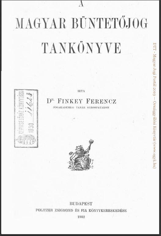 Az Országgyűlési Könyvtárban megtalálható monográfiái digitalizálva is hozzáférhetők a Magyar Jogi Portálon: https://go.ogyk.hu/dtt-coll-finkey-ferenc