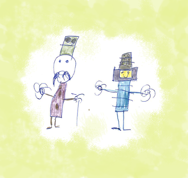 Az alábbi képekre kattintva két tanmese tölthető le. Az egyik történet a mesterséges intelligencia térnyerésének pozitív hatásait domborítja ki, a másik pedig annak árnyoldalaira hívja fel a figyelmet. A történetek feldolgozásában irányított kérdések segítenek.