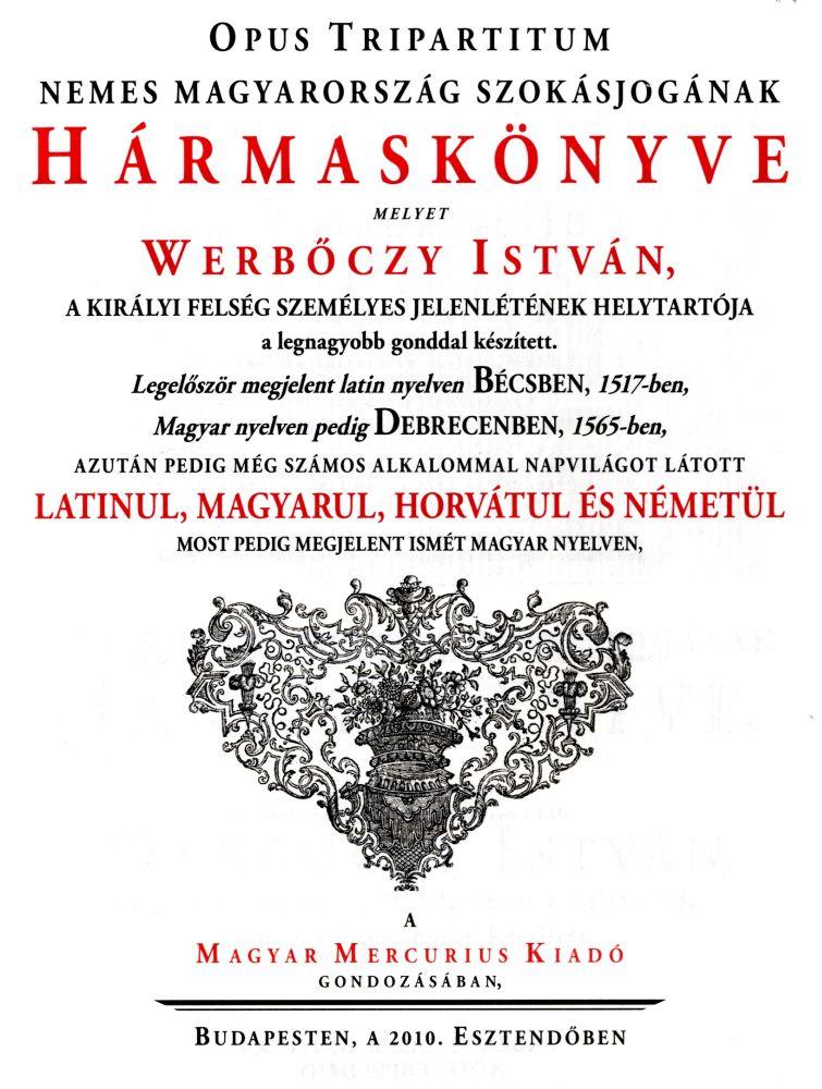 500 éve, 1514. október 18-án mutatta be Werbőczy István ítélőmester az országgyűlésben a király megbízásából készített latin nyelvű szokásjogi gyűjteményét, a Hármaskönyvet, a Tripartitumot, amely a 19. századig a magyar jogszolgáltatás alapja maradt.