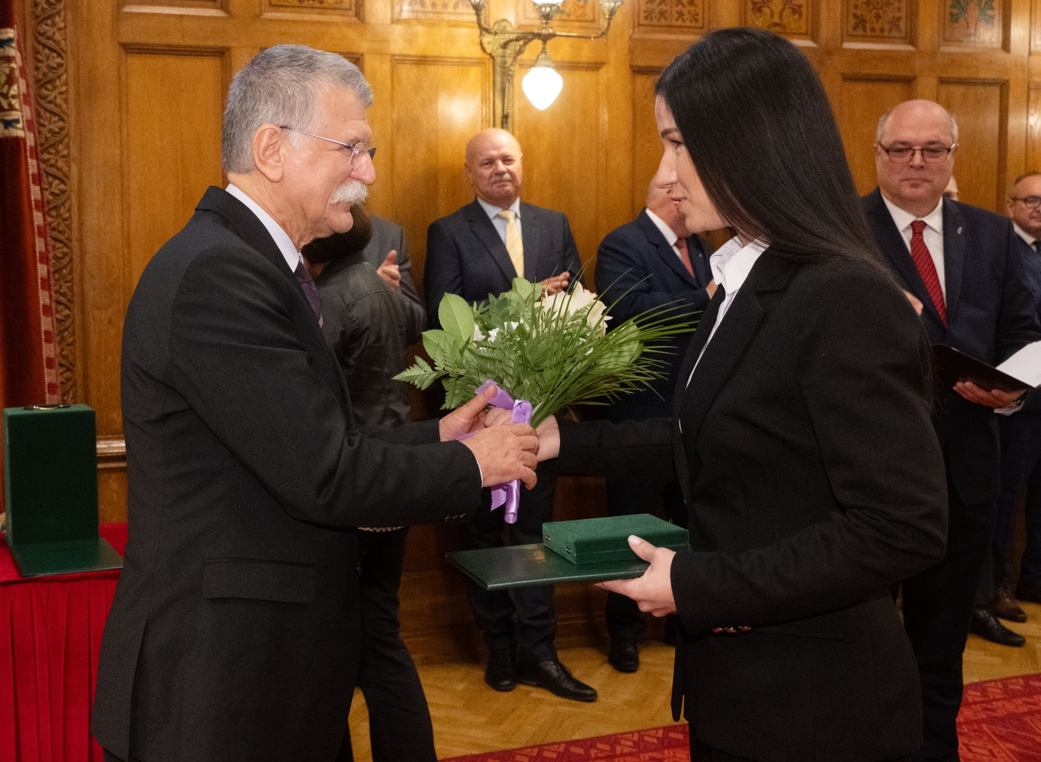 A díjazott 1989 nyara óta a Hivatal munkatársa. Pályafutását igazgatásszervező diplomával főelőadóként kezdte, majd főmunkatársi beosztásban folytatta. Teljesítményét már korán elismerték: 1991-ben az Országgyűlés Hivatalának tanácsosa címet kapta. Szorgalma, rátermettsége és elkötelezettsége révén 1992-től folyamatosan vezetői beosztásban dolgozik. Előbb az Igazgatási Osztály vezetője, majd 1995-től az Általános Igazgatási Főosztály főosztályvezetőjeként folytatta munkáját. Szakmai elhivatottságát bizonyítja, hogy 2010-ben a Budapesti Corvinus Egyetemen okleveles közigazgatási menedzser szakképzettséget szerzett. 2011-ben szakmai főtanácsadói címmel ismerték el tevékenységét. 2014. január 1. óta főosztályvezetői rangban az Igazgatási Iroda vezetőjeként látja el feladatait. Kiemelkedő munkáját 2007-ben a Magyar Köztársaság Érdemrend Lovagkeresztje (Polgári Tagozat) kitüntetéssel ismerték el. Szervezeti egysége rendkívül sokrétű feladatokat lát el: többek között az országgyűlési képviselők és nemzetiségi szószólók iroda-, lakás- és szállodai elhelyezéséhez kapcsolódó ügyek intézését, a képviselői adatlapok naprakészen tartását, igazolványok kiadását, biztonságtechnikai feladatok szervezését, az elektronikus beléptetőrendszer működtetését, a Hivatal egészségügyi ellátásának megszervezését, különféle rendezvények lebonyolítását, a hivatali dolgozók gyermekeinek Mikulás ünnepének szervezését, a Lakásbizottság és a Kegyeleti Bizottság titkári feladatainak ellátását, valamint a központi postázási és postabontási teendőket. Nevéhez fűződik a jelentős hagyományokra visszatekintő, évtizedek óta sikerrel megrendezett „Gyermekkarácsony” szervezése, amelyen határon innen és túlról érkező gyermekek ezrei vehettek részt az Országházban, felejthetetlen élményekkel gazdagodva. Több évtizedes, elhivatott szakmai munkájával, kiemelkedő emberi hozzáállásával jelentős mértékben hozzájárult a Hivatal és az országgyűlési képviselők munkájának magas színvonalú támogatásához. Kollégái és felettesei egyaránt nagyra értékelik szakmai tudását, empátiáját, elkötelezettségét és kitartását. Irányítása alatt az Igazgatási Iroda munkája a képviselők és a dolgozók érdekeit szem előtt tartva, megbízhatóan és magas színvonalon működik. Szorgalma, vezetői képességei, valamint több mint 36 éven át a Hivatal szolgálatában végzett példaértékű munkája a Gazdasági és Működtetési Igazgatóság emblematikus alakjává tette. |