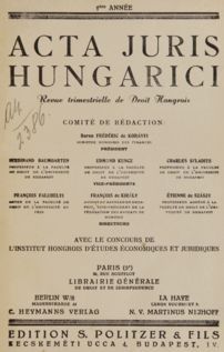 - Acta Juris Hungarici. = Miskolci Jogászélet, 1932. VIII. évf. 3–4. sz. 16. p.